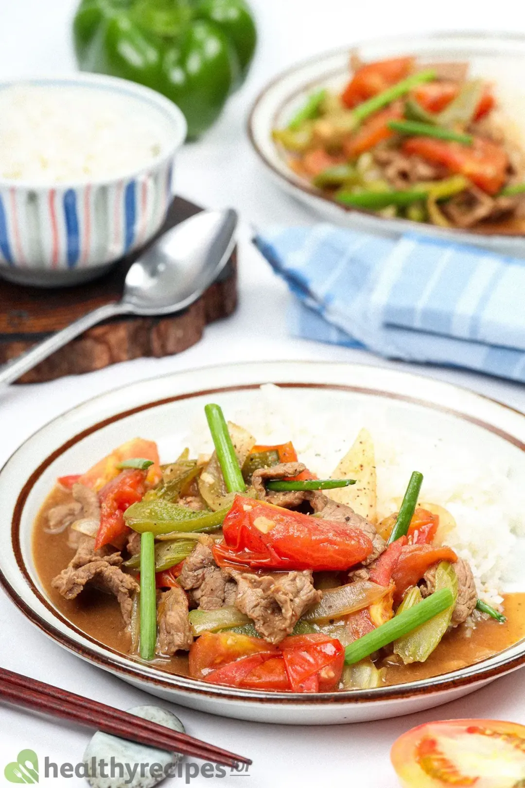 This dish may last for 2 or 3 days when kept in airtight containers in the fridge. To reheat, place it in the microwave at full power for 1 minute or do a quick stir of the beef mixture on the stovetop. If possible, cook new rice for a better taste.