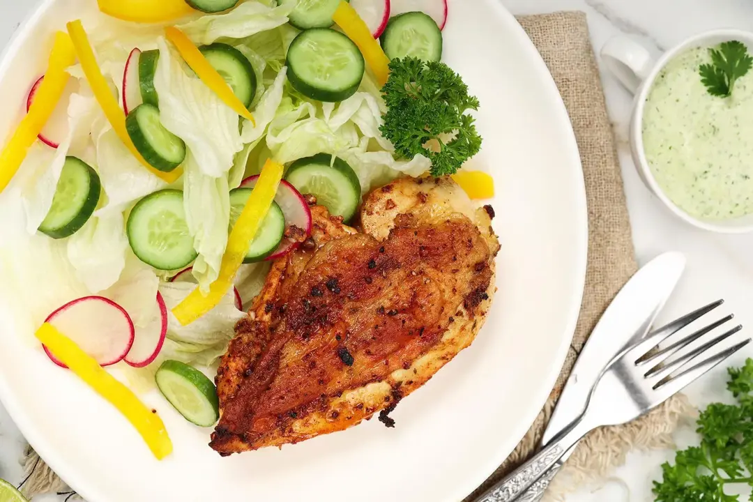 Using the chicken breast as the main ingredient, our dish provides up to 37 g of protein per serving. When served with a green salad, potato wedges, and a juice drink, our air fryer Peruvian chicken promises a whole meal with a healthy source of carbs, fiber, and other micronutrients.