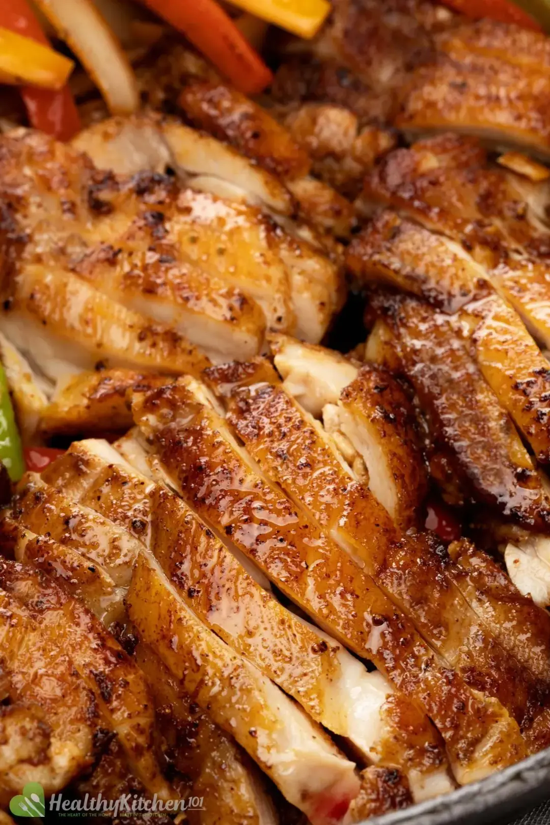 For this fajitas recipe, chicken gets marinated in a special sauce of salt, pepper, chilli, cumin, paprika, cayenne, and garlic powder. Then it is seared for an appealing crisp outer edge while still juicy on the inside.