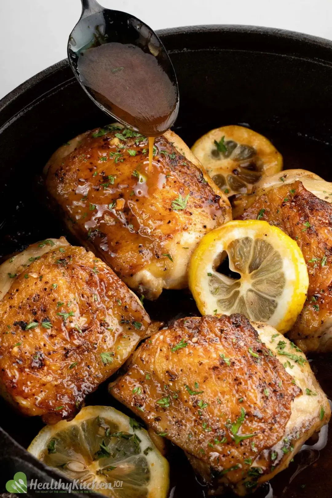 One of our tried-and-true tips for preparing honey butter chicken thighs is to combine searing with baking. Searing the chicken beforehand helps bring out its best flavor while baking helps cook the chicken thoroughly from the inside out.